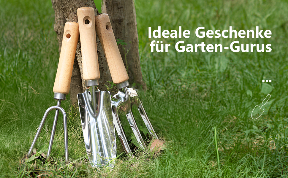 Ergonomisches Griffdesign: Um eine komfortable und mühelose Benutzererfahrung zu ermöglichen, wurden die Gartenwerkzeug Set gut entworfen, mit rutschfestem holzgriff und sind für verschiedene Handgrößen geeignet. Egal ob Kinder oder Senioren, diese gartenzubehör machen das Graben, Tragen, Jäten, Pflanzen und Beschneiden einfach.