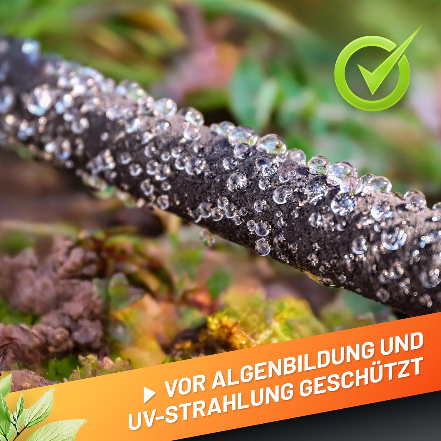 Mit einer Länge von 15,24 Metern (50 Fuß) ist der Tropfschlauch besonders für kleinere bis mittelgroße Beete und Gartenflächen geeignet und kann problemlos unter der Erde angewendet werden. Der Perl-Regner ist außerdem einfach auf die gewünschte Länge kürzbar 💦