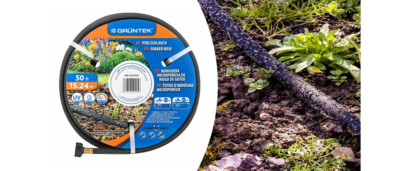 GRÜNTEK Perl-Schlauch in 50 Fuß / 15,24 m LängeSchonende Bewässerung für Ihren Garten mit bis zu 70 % Wasserersparnis