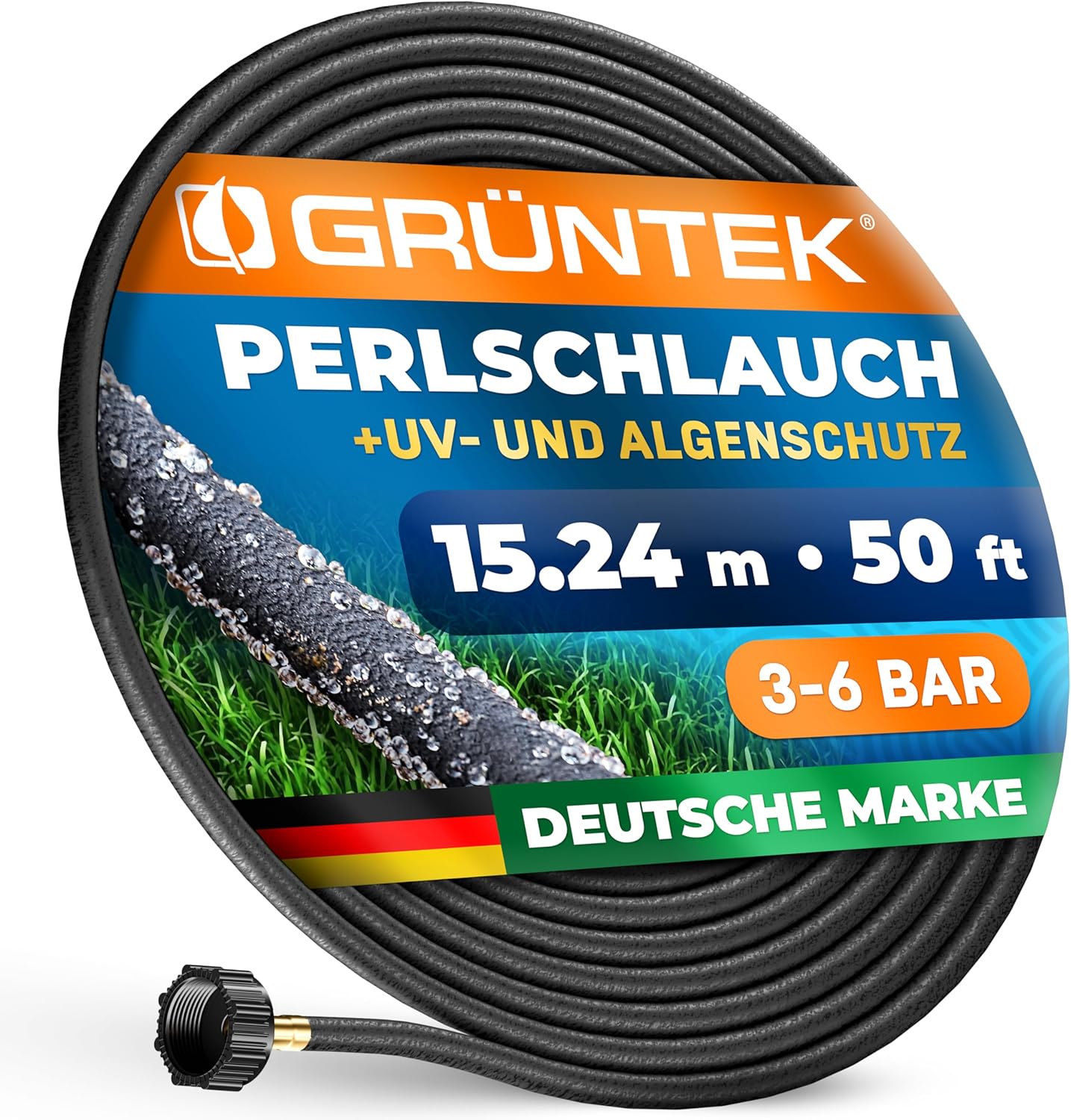 GRÜNTEK Tropfschlauch Set, Perlschlauch 15,24 m / 50 ft, 1/2 Zoll Gewinde-Anschluss, UV- und Algen-Schutz, bis 70% wassersparender Perl-Regner für umwelt- und pflanzenschonende Bewässerung