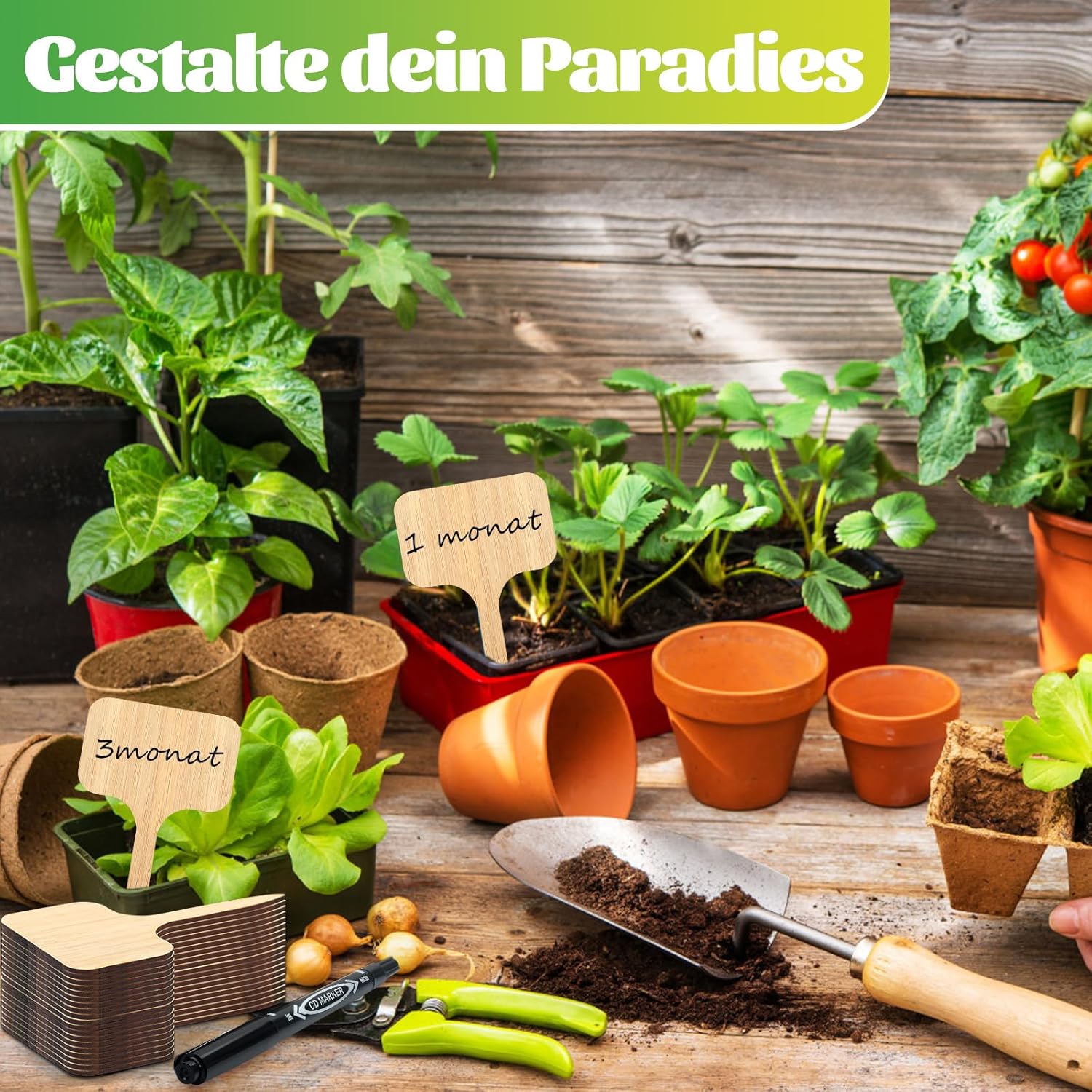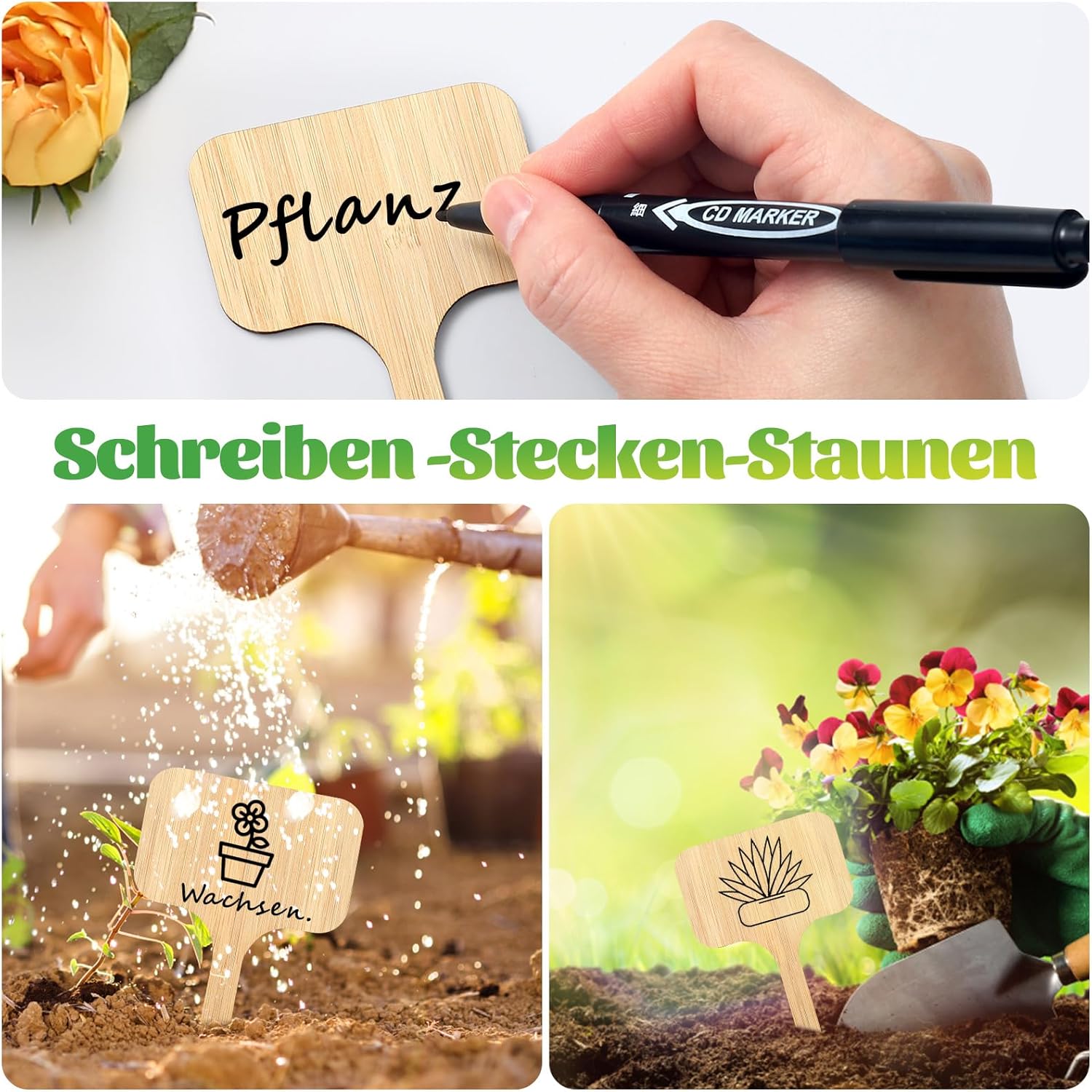 ✒️【Leicht zu beschriften】 Beidseitig glatt, mit mitgeliefertem Markierstift für Pflanzennamen, Pflanzzeitpunkte und andere Informationen. Langlebig und wetterbeständig.