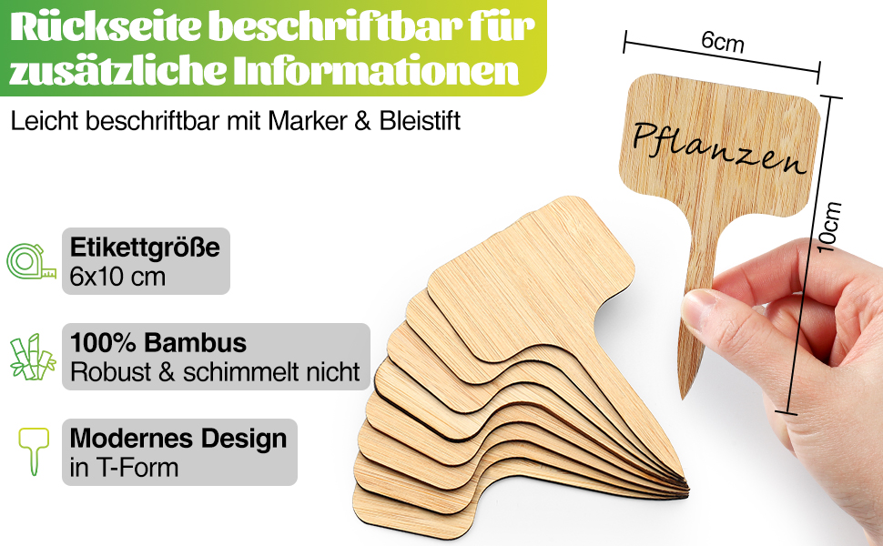 🏷️【Hochwertiger Kunststoff】 Pflanzenstecker aus robustem Bambus mit glatten Kanten, alterungsbeständig, UV-beständig.