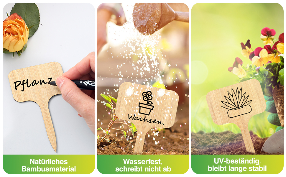 Sehr schöne stabil wirkende schildchen und eben nicht aus plastik!!Sogar ein Stift ist dabeigutes Preis leistungsverhältnisjetzt schauen wir mal wie lange sie draussen haltenIch denke aber schon das das Bambusmaterial stabil sein wirdklare Kaufempfehlung