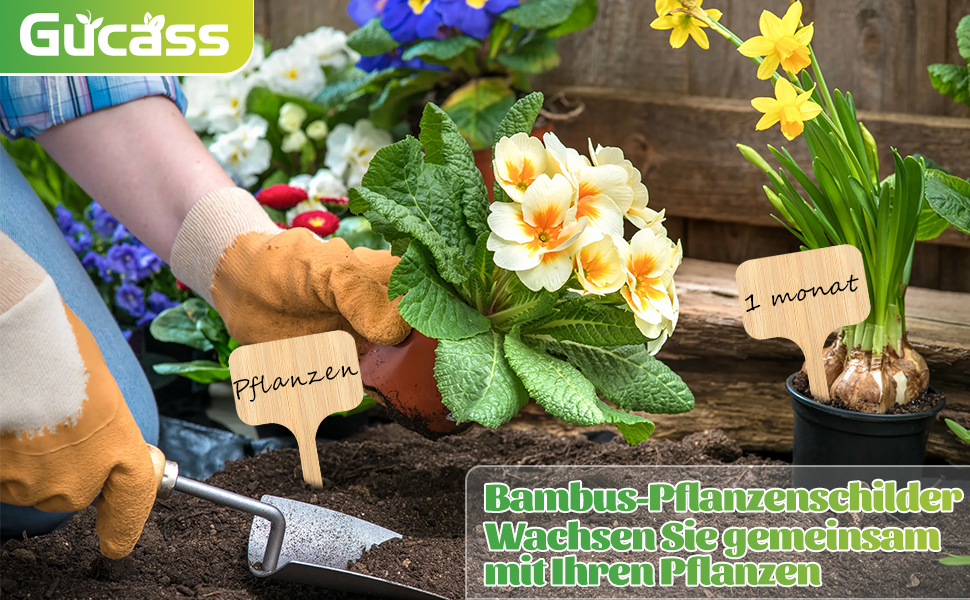 Gucass 40x Pflanzenschilder aus Bambus, Pflanzenstecker zum Beschriften inklusive Marker, Wetterfest Stecketiketten, Pflanzschilder, Pflanzen schilder für Gemüse, Kräuter, Blumen