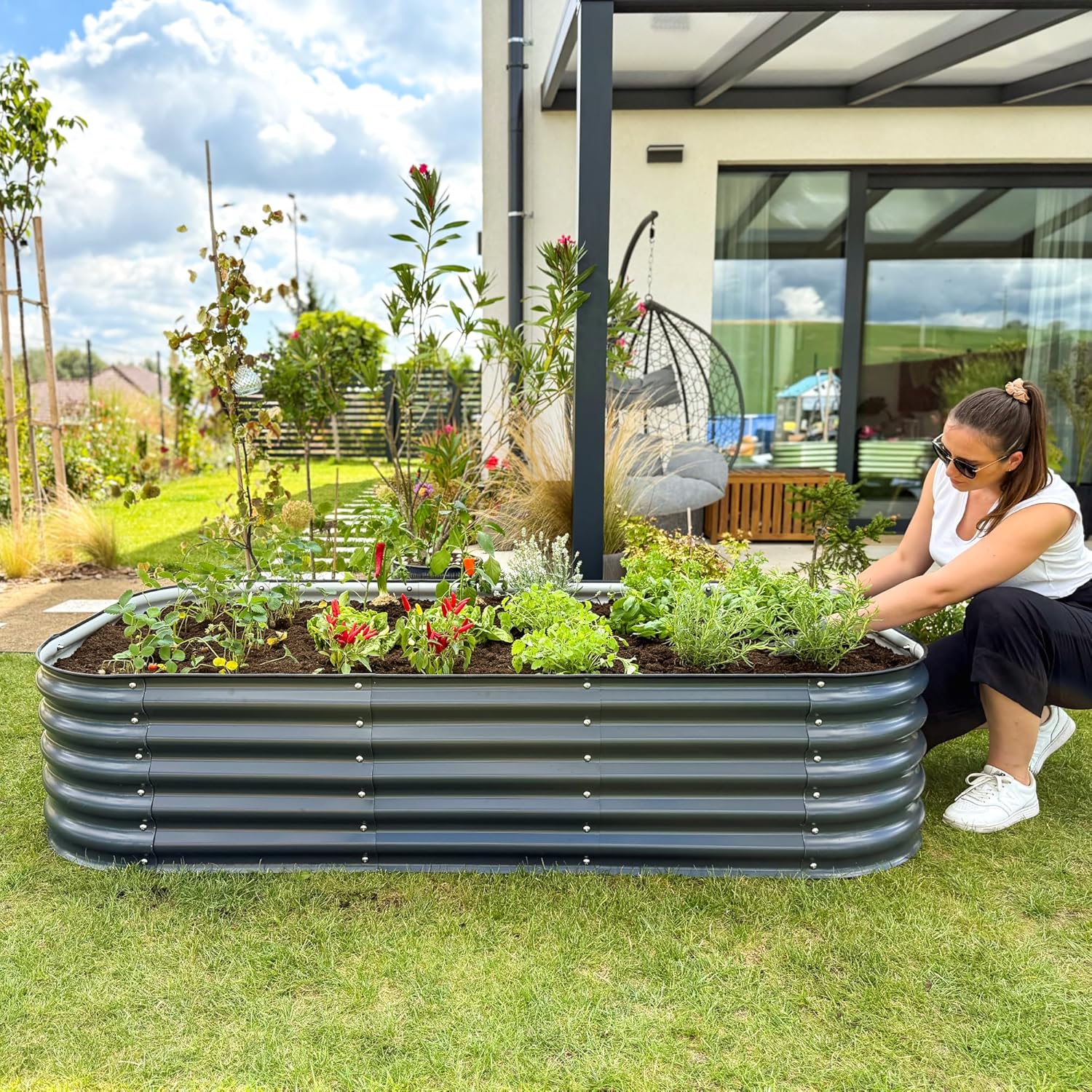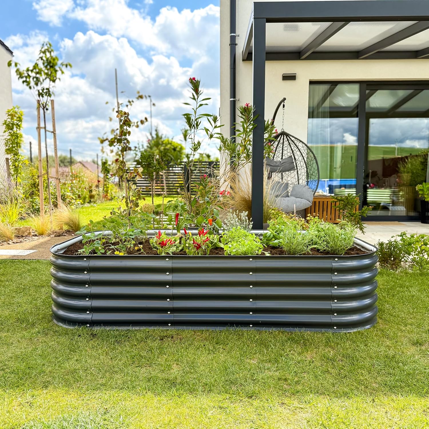Zum WarenkorbHochbeet aus Metall 240x60x43 cm – Modulares 9-in-1 Hochbeete-Kit – Rostfreie Hochbeete für Garten aus Premium Zn-Al-Mg Stahl – Min. 20 Jahre Lebensdauer – 43 cm Hoch Gemüsebeet, Anthrazit