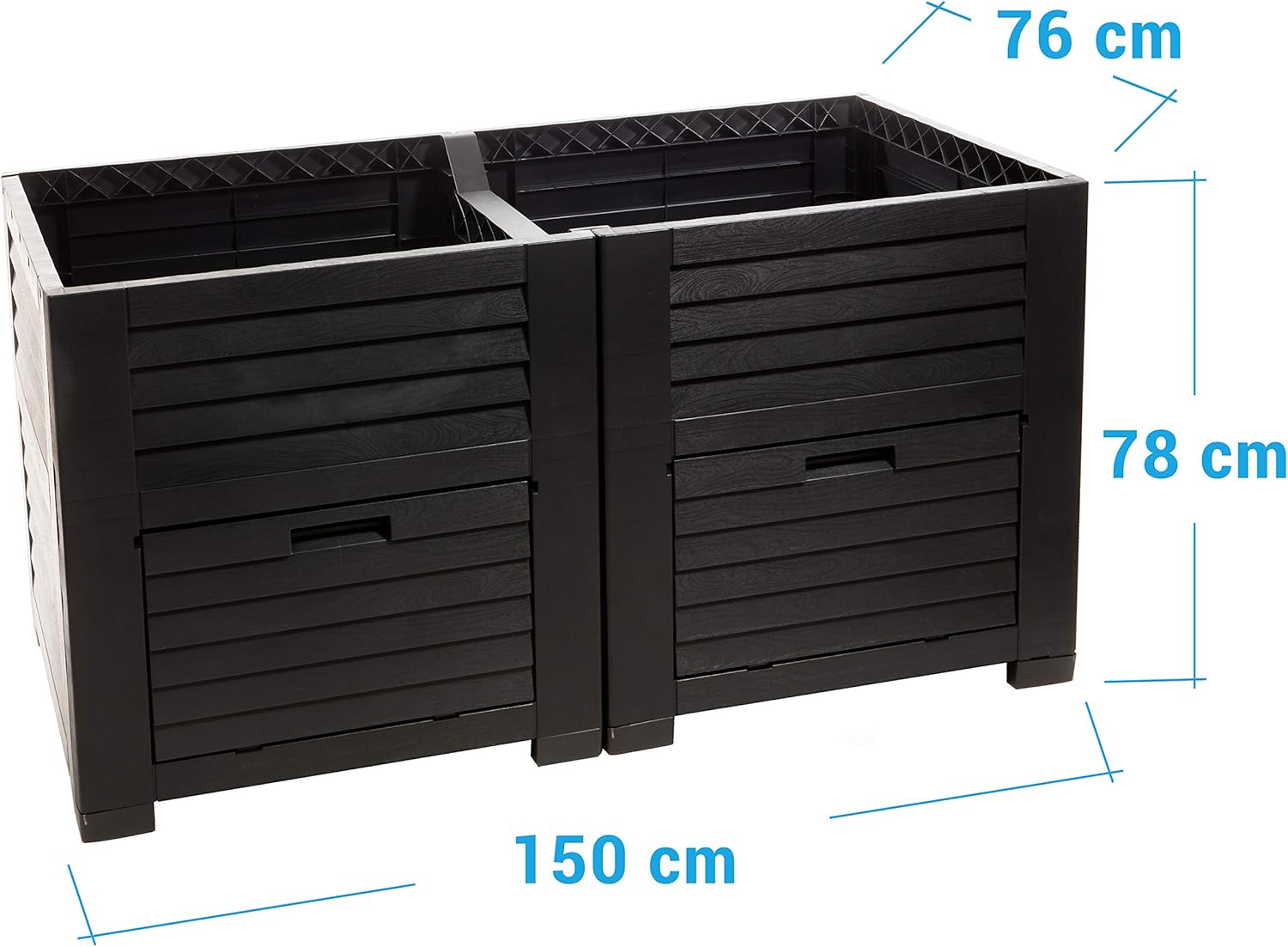 Hochbeet Garten XL, Hochbeete Kunststoff in Holzoptik mit 2 Staufächern für Gartenutensilien, 400 Liter Kräuterbeet für Garten, Terrase, Balkon, 150x76x78 cm, Farbe: anthrazit, Made in EU