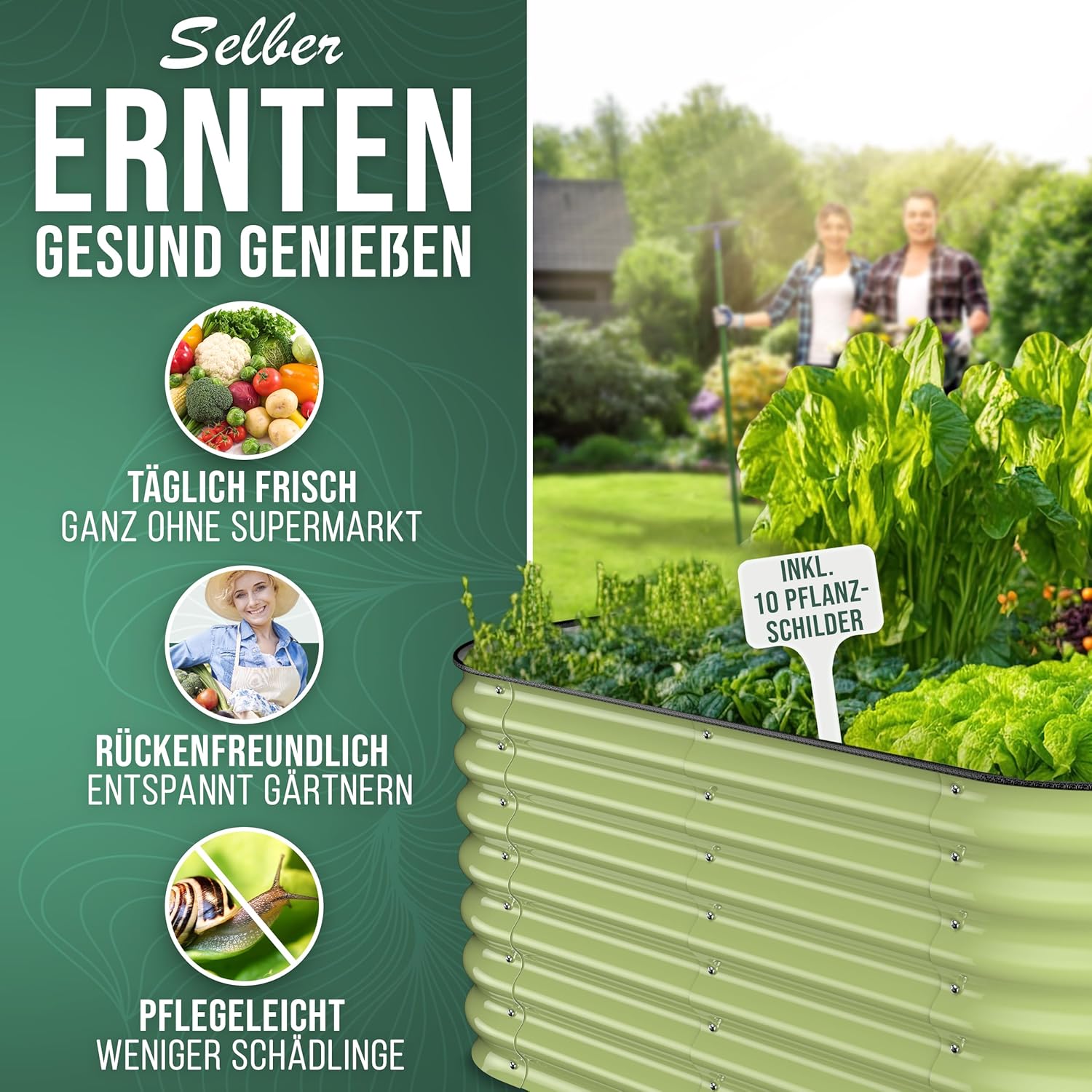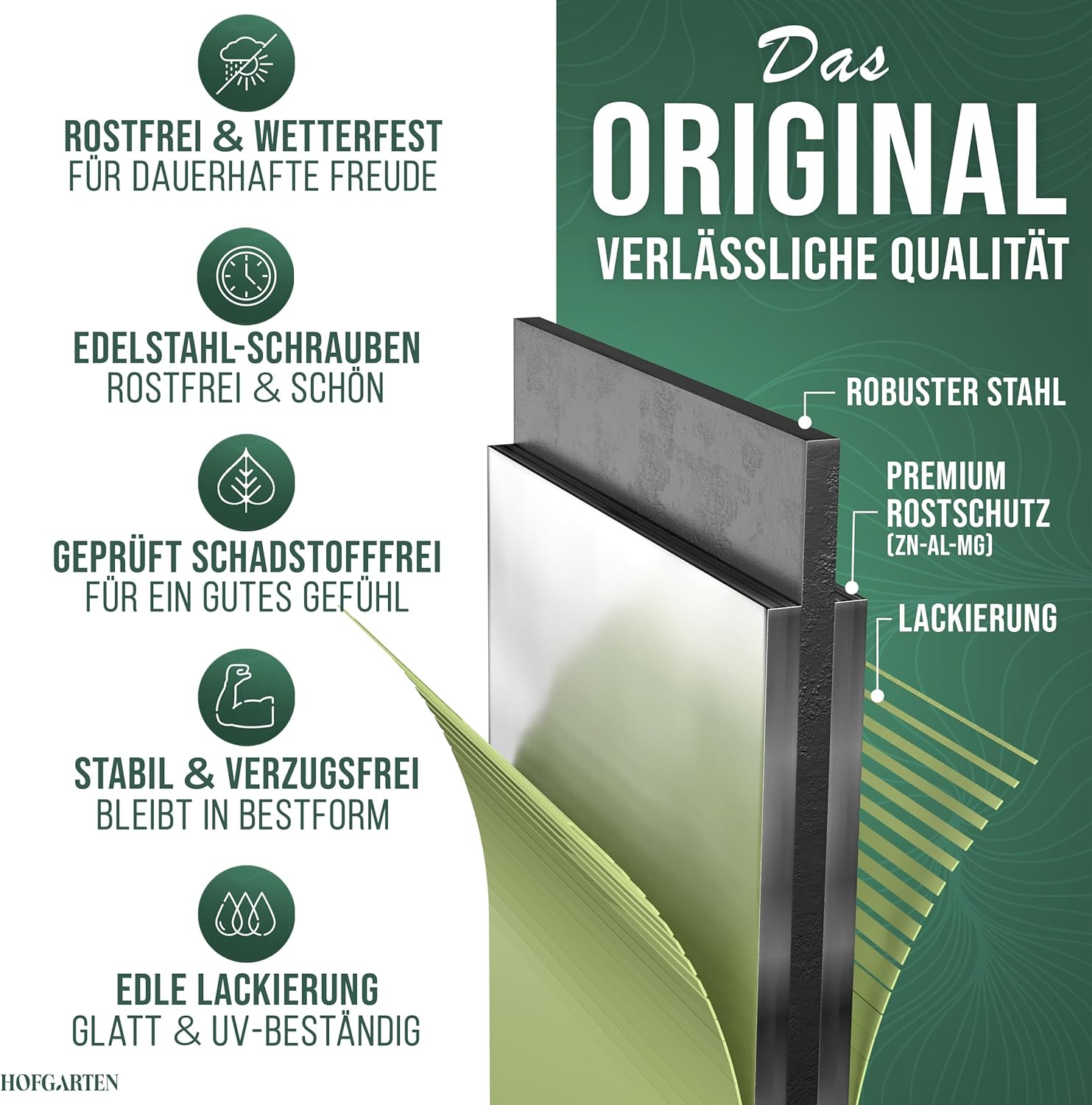💪 ROBUST – Das unten offene Hochbeet aus Stahl-Wellblech ist extrem stabil und dank der beidseitigen Zink-Aluminium Legierungsbeschichtung optimal für den Einsatz im Außenbereich geeignet.
