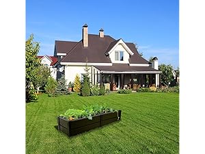 PLATZSPAREND: Mit seinem schmalen Design passt das Hochbeet perfekt in kleinere Gärten, auf Terrassen oder Balkone. Es bietet ausreichend Platz, um verschiedenste Pflanzen in vertikalen Schichten anzubauen, wodurch der verfügbare Platz optimal genutzt wird.