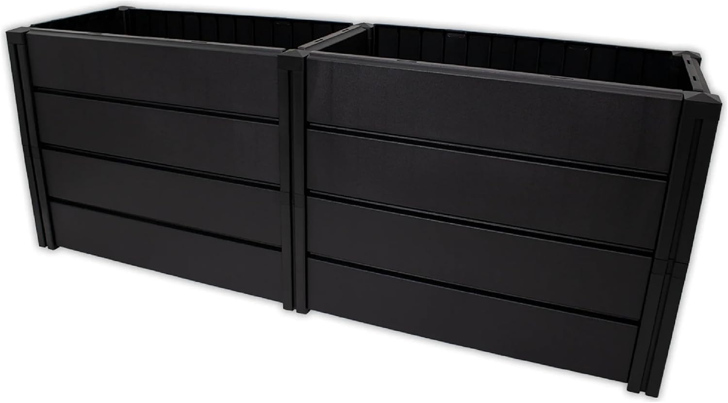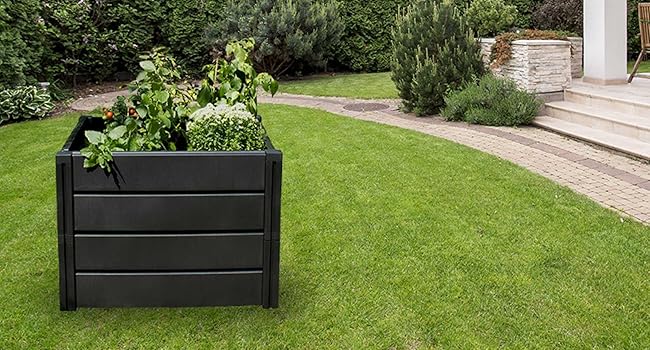 Das Hochbeet besteht der Umwelt zuliebe aus 100 Prozent recycelten Kunststoff, ist pflegeleicht, wetterfest und passt dank seines schlichten und zeitlosen Designs in jeden Garten.