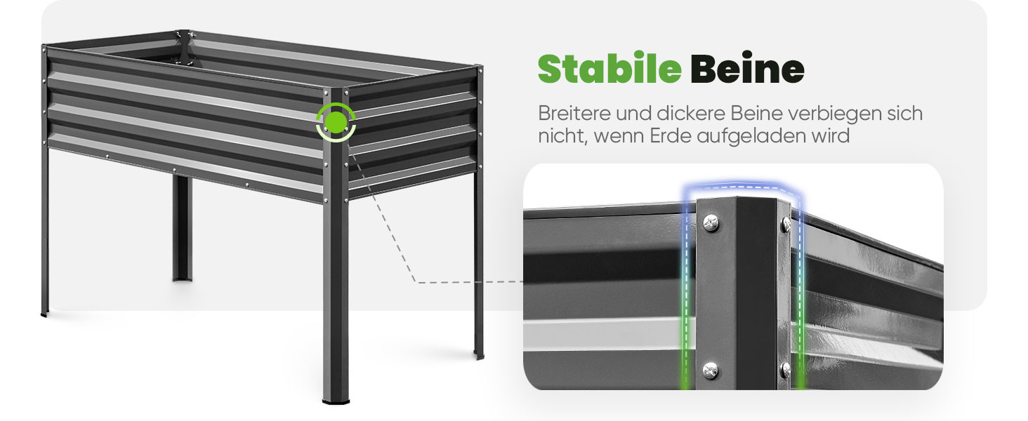Robust und Langlebig: Dieses Hochbeet ist rostbeständig und unterstützt bis zu 181kg Gewicht. Es ist haltbarer als Modelle aus Holz und widersteht Verformungen und Rissen, was eine längere Lebensdauer gewährleistet.