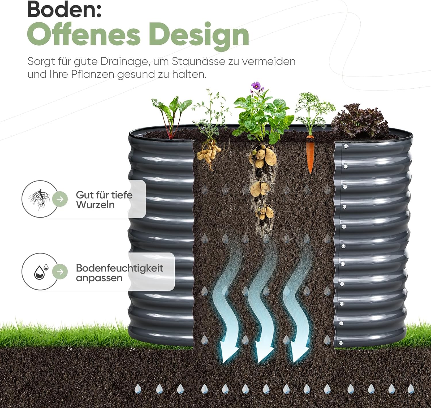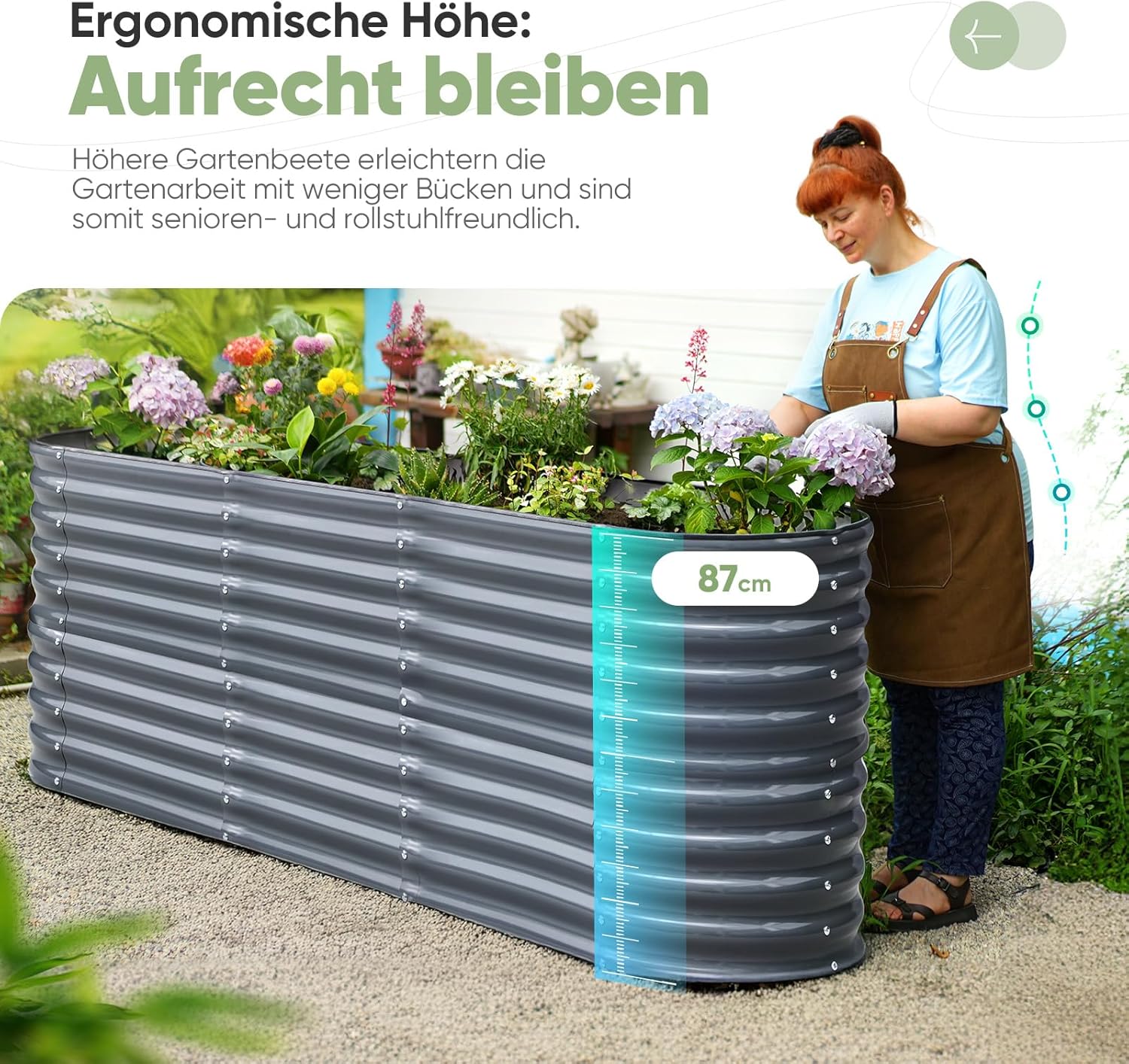 Ohuhu Hochbeet Metall Pflanzenbeet 240x90x60 cm, Hochbeete für Garten aus robustem Stahlblech mit... |