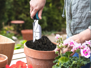 TransplanterSagen Sie mit klaren Zeckenspuren sicher, dass kleine Pflanzen auf die richtige Tiefe eingestellt sind.