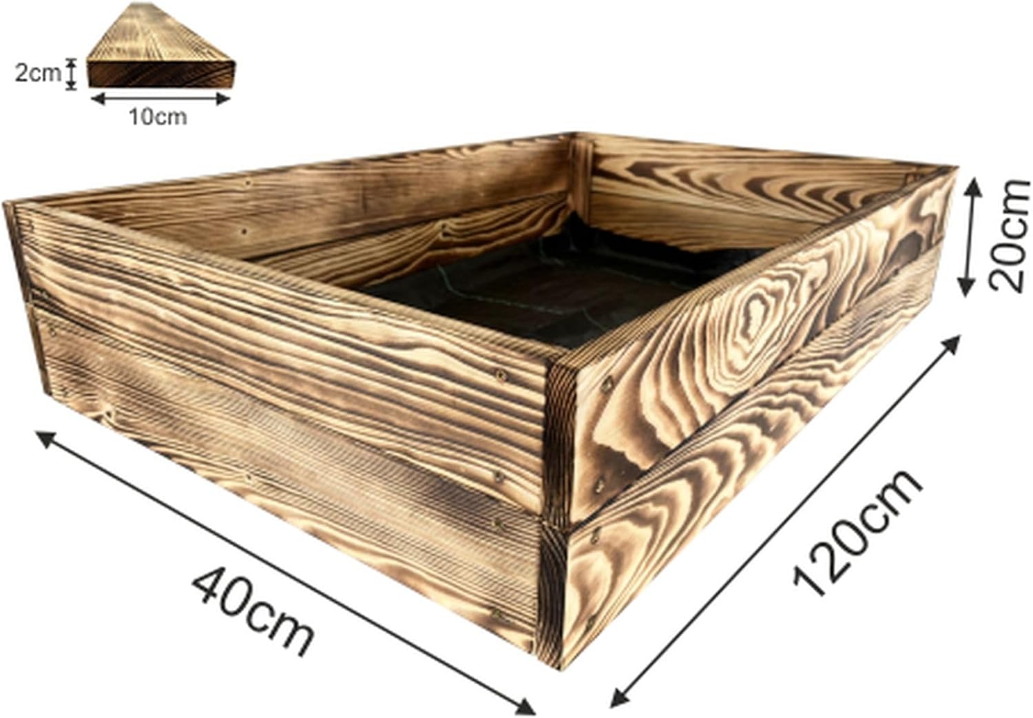 5 Rezensionen für Lermowoood Hochbeet aus Holz 120x40x20 cm Geflammt – Pflanzkasten für Gemüse & Kräuter – mit Agrovließ – steckbar & stapelbar- Aussenbereich ideal für Garten, Balkon & Terrasse