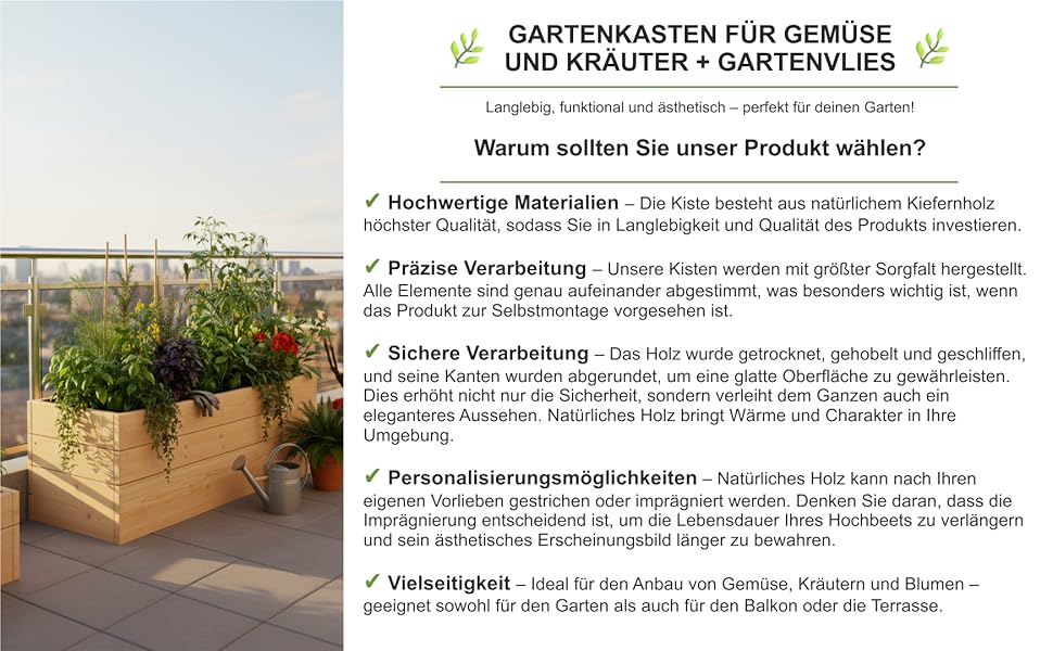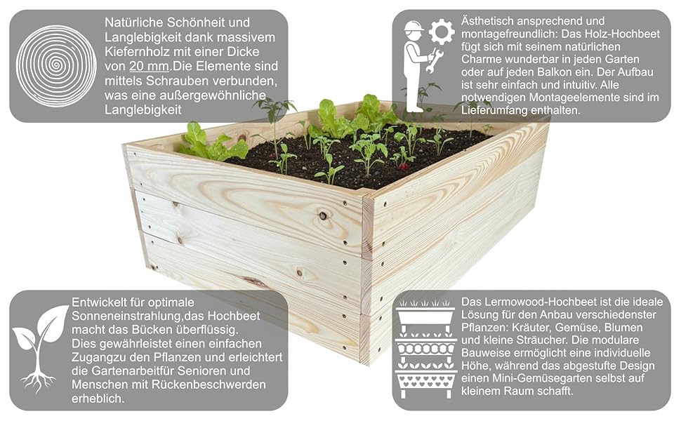✅Perfekt für Gemüse, Kräuter & Blumen – Hochbeet aus natürlichem Kiefernholz, ideal für den Anbau im Garten, auf dem Balkon oder der Terrasse.