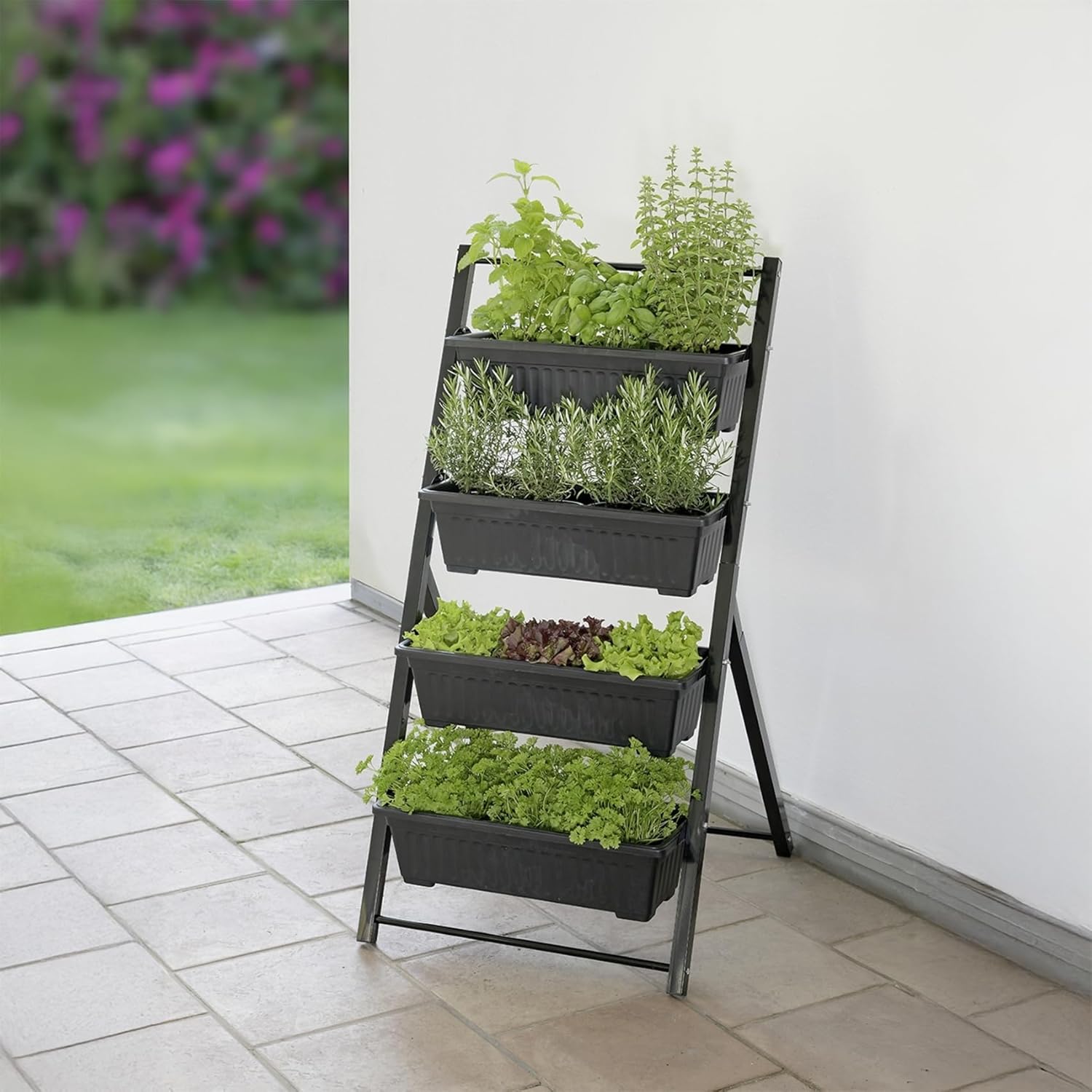Blühende Deko: Vertikales Hochbeet mit 4 Etagen von Maximex, ideal für Balkon, Terrasse und Wintergarten zur Schaffung einer blühenden Oase