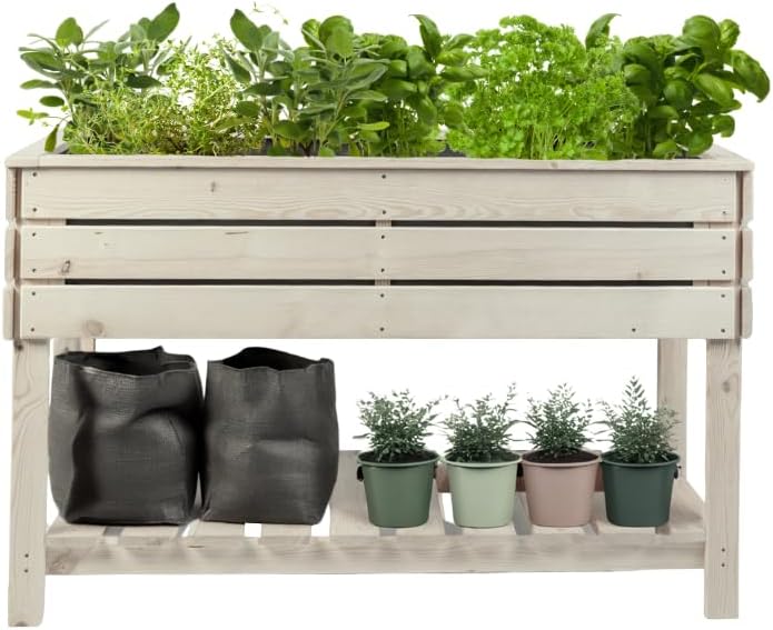 Mega Holz Balkon Hochbeet STELZO L 123x61x75 (BxTxH) aus Natürlicher Kiefer, Blumenbeet aus Holz, wetterfest, Innen- und Außenbereich, Kräuterbeet für Garten, Balkon und Terrasse, 100% Nachhaltig
