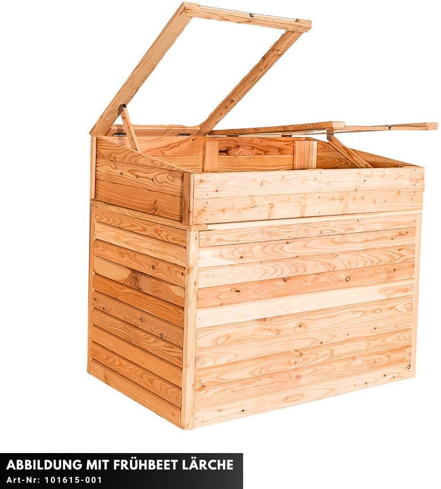 Das Hochbeet Rhombus ist eine elegante Lösung für alle Gartenfreunde, die Wert auf Stil und Funktionalität legen. Dieses innovative Hochbeet besticht durch seine einzigartige Konstruktion mit einer perfekten Ecke, die herkömmlichen Verblendleisten obsolet macht und das Beet zum optischen Highlight in Ihrem Garten oder auf Ihrer Terrasse werden lässt. Hergestellt aus edlem, naturbelassenen Lärchenholz, vereint das Hochbeet natürliche Schönheit mit schlichtem Design und bietet reichlich Raum für ein blühendes Blumenmeer oder einen aromatischen Kräutergarten. Die Montage ist ein Kinderspiel, dank vormontierter Wände und integrierter Pflanzenfolie, sodass Sie in nur wenigen Schritten Ihr Hochbeet aufbauen können. Für alle, die es größer mögen stehen die Varianten XL und XXL zur Verfügung, sodass jeder nach seinem Bedarf und Platzangebot das passende Hochbeet wählen kann. Lassen Sie sich von der Eleganz und Funktionalität überzeugen und genießen Sie das Gärtnern auf einem neuen Level! Technische Daten: Dimensionen: 120 x 80 x 73 cm Holz: Lärche naturbelassen Seitenwände: Rhombusprofile 20mm Pflanzfolie: montiert Löcher: an Seitenwänden vorgebohrt Kulturfläche: ca. 1m² Inhalt: Vormontierte Seitenwände mit Pflanzfolie Handlauf Edelstahl TX-Schrauben Deutsche Aufbauanleitung