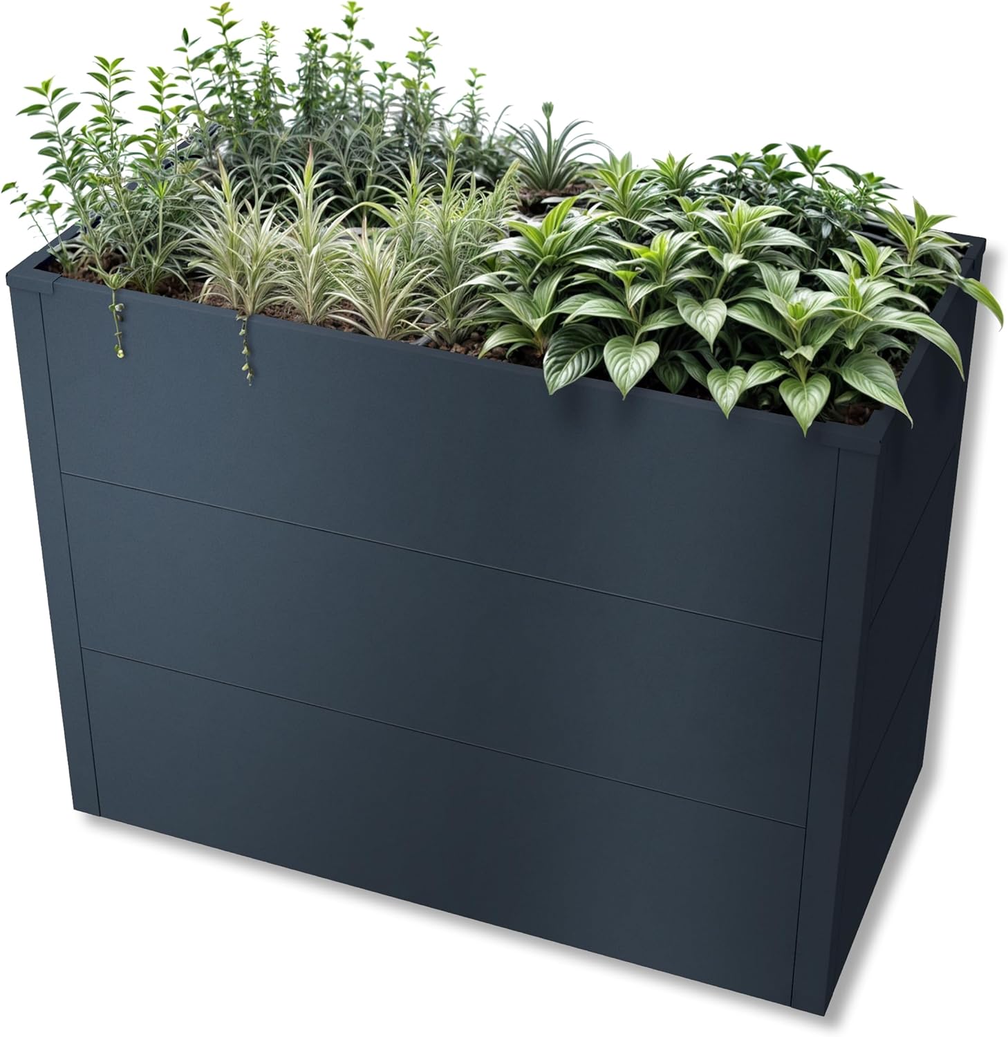 Hochbeet aus massivem Stahl, pulverbeschichtet in Anthrazitgrau RAL 7016: Robuste Konstruktion aus hochwertigem Stahl mit eleganter Pulverbeschichtung für zeitlose Eleganz und Witterungsbeständigkeit im Garten.
