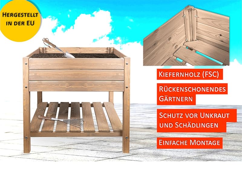 Das mgc24 Hochbeet aus FSC-zertifiziertem Kiefernholz ist ideal für Gemüse, Kräuter und Blumen. Es schützt vor Unkraut, ermöglicht rückenschonendes Gärtnern und sorgt für höhere Erträge. Die wetterfeste Konstruktion ist langlebig, und die Ablage bietet Platz für Zubehör. Mit einfacher Montage und Gartenvlies inklusive ist es perfekt für den Innen- und Außenbereich – für nachhaltiges Gärtnern!