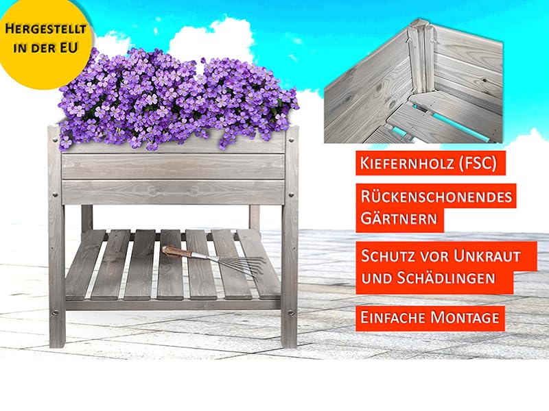 Das mgc24 Hochbeet aus FSC-zertifiziertem Kiefernholz eignet sich perfekt für Garten, Balkon oder Terrasse. Es schützt Pflanzen vor Unkraut und Schädlingen, ermöglicht rückenschonendes Arbeiten und fördert höhere Erträge dank Wärmeisolierung. Die wetterfeste Konstruktion ist langlebig und ideal für den Innen- und Außenbereich. Mit einfacher Montage und praktischer Ablage ist es vielseitig nutzbar – ideal für Gemüse, Kräuter und Blumen.