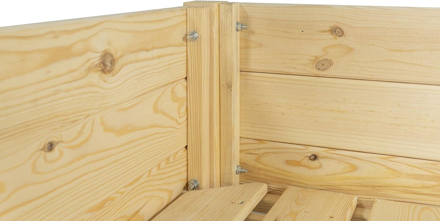 🌱 Zu 100% aus witterungsbeständigem Kiefernholz aus nachhaltigem Anbau gefertigt. Geeignet für Innen- und Außenbereiche. Ein Gartenvlies (70g/m²) zur optionalen Verwendung als Einlage ist im Lieferumfang enthalten.