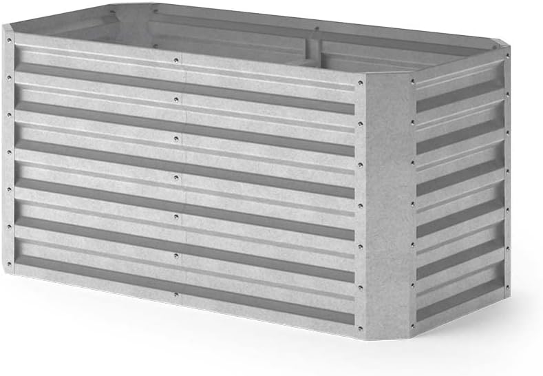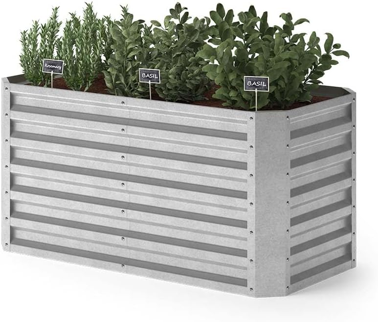 ok-Living Hochbeet Kräuterbeet Gemüsebeet rechteckig 120x60x60cm (LxBxH) Silber Pflanzkasten Frühbeet Aufzucht Beet Garten