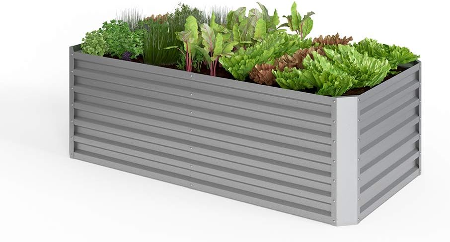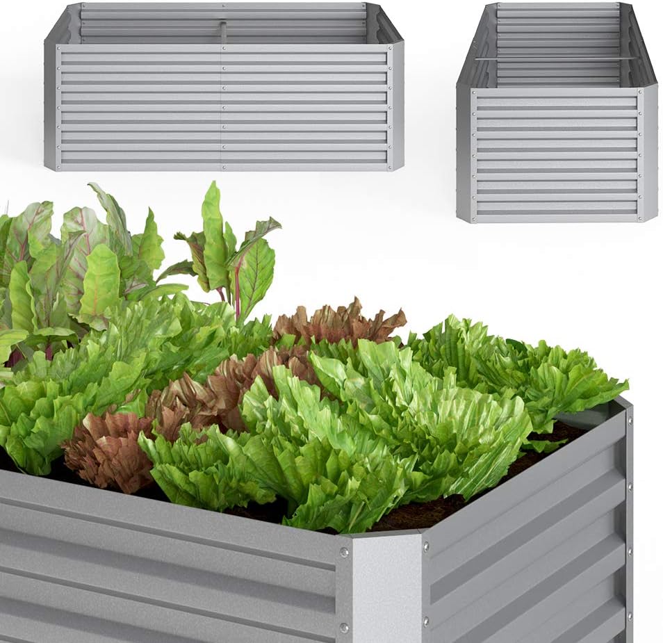 11 Rezensionen für ok-Living Hochbeet Kräuterbeet Gemüsebeet rechteckig 180x90x60cm (LxBxH) Silber Pflanzkasten Frühbeet Aufzucht Beet Garten