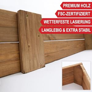 Schnelle Lieferung, stabiles Holz in einem schönen Farbton, der nicht zu rötlich ist.Die Größe der Beete ist für uns genau passend.Wir sind rundum zufrieden..