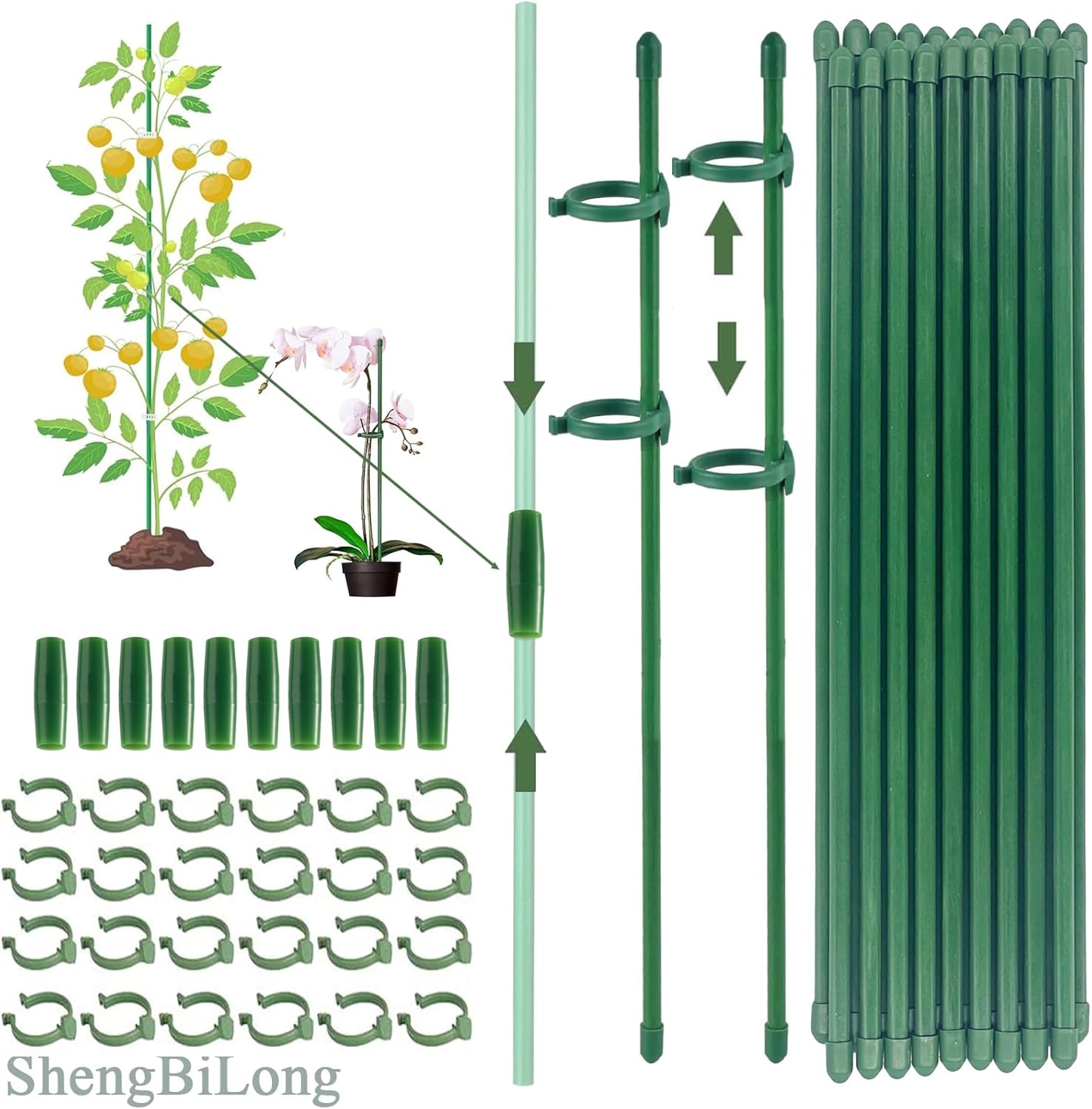 ShengBiLong Pflanzenstütze, Rankhilfe, 20 Stück Pflanzenhalter, mit 20 Karabinern + 10 Verlängerungsrohren,