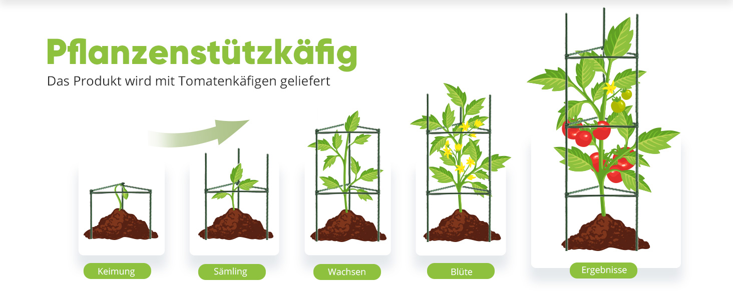 Tomatenkäfige included: Tomatenstützkäfig für verzinktes GartenbeeDer Tomatenkäfig unterstützt Pflanzen und verhindert, dass Pflanzen aufgrund des eigenen Gewichts oder der Früchte herunterfallen.