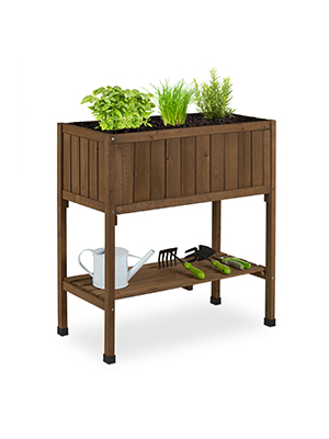Holzbeet mit Ablage für Blumenerde und Pflanzzubehör