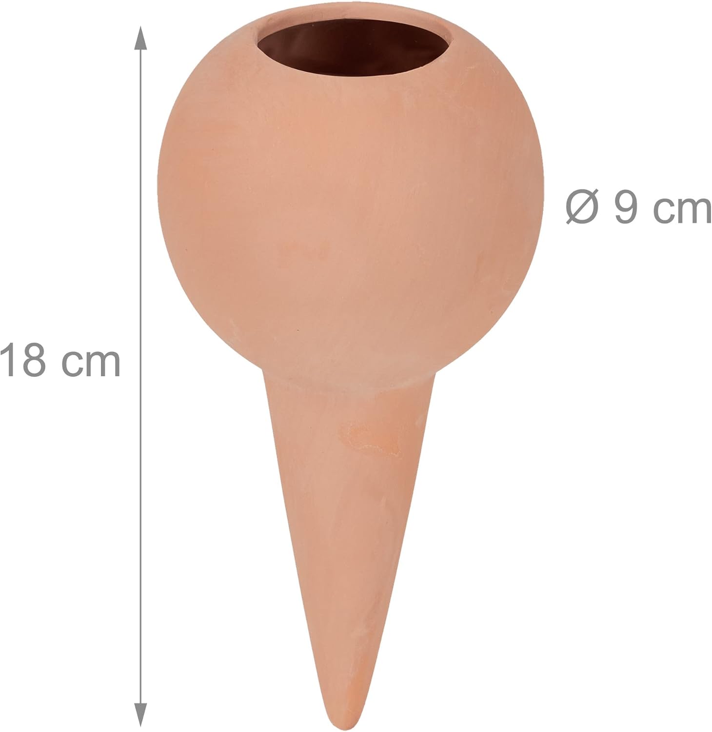 Relaxdays Tonkegel Bewässerung, 4er Set, Gießkugel für 1,5 l PET-Flaschen, für Zimmerpflanzen & Balkonkästen, terrakotta