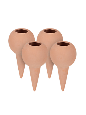 Mit den 4 Tonkegeln kannst Du Deine Blumen und Pflanzen während eines heißen Sommers oder eines Urlaubs automatisch mit Wasser versorgen. Versenke die Bewässerungskugeln in der Erde und fülle sie mit Wasser. Alternativ kannst Du auch eine volle 1,5 l PET-Wasserflasche in die Gießkugel stecken. Das durchlässige Material gibt genügend Wasser ab, um die Erde feucht zu halten. So kannst Du sorgenfrei Deinen Plänen nachgehen, während Deine grünen Schätze sicher bewässert werden.
