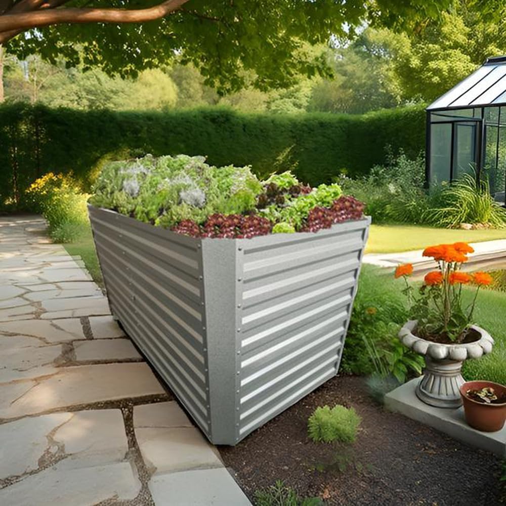 Stabile Stahl-Wellblech Konstruktion mit Zink-Aluminium Legierunghohe Witterungsbeständigkeitbestens zum Anbau von Gemüsen, Kräutern, Blumen oder Obst geeignetLeichtes Arbeiten dank angenehmer Arbeitshöhe unkomplizierte Montage