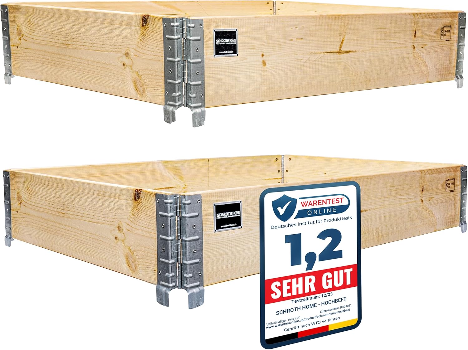 Schroth Home Hochbeet 120x80x20cm Rechteckig – Palettenrahmen aus Holz – Faltbar, Steckbar & Stapelbar