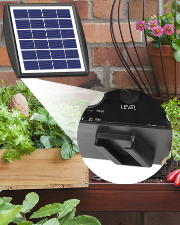 Automatischer Wassermangelalarm: Wenn kein Wasser vorhanden ist, piept das Solar-Tropfbewässerungsset, um Sie daran zu erinnern, Wasser nachzufüllen. Es piept in regelmäßigen Abständen, wenn der Wasserstand niedrig ist oder die Sonde im Wasser ist und der Strohhalm verstopft ist. Sie müssen nur Wasser nachfüllen oder die Sonde reinigen, um das Problem zu lösen.