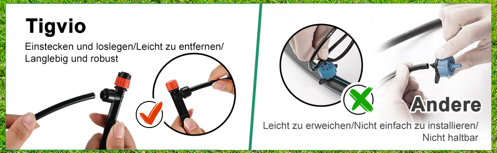 Schnell und effizient: Unser Plug-and-Play-Bewässerungsschlauch verfügt über ein neues Schnellverbindungsdesign, das die mühsame Montage von früher ablöst und eine effiziente Bewässerung ermöglicht. Er gewährleistet eine sichere Installation und verhindert Lecks, was die Installation zu einem Kinderspiel macht. In nur zehn Minuten ist der Schlauch einsatzbereit und spart Ihnen Zeit und Mühe.