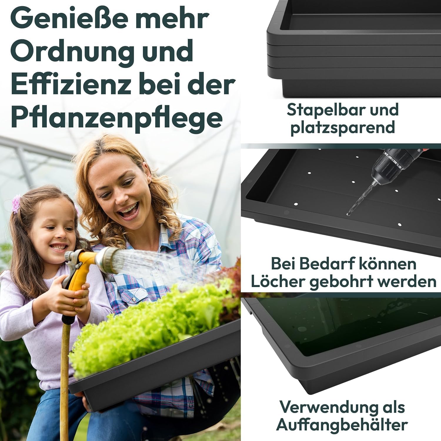 🌿 PRAKTISCHES DESIGN – Mit ihren kompakten Maßen von 60x40x6,5 cm und einem Fassungsvermögen von ca. 15 Litern ist die Kunststoffwanne perfekt für jede Gartengröße und kann leicht gestapelt werden.