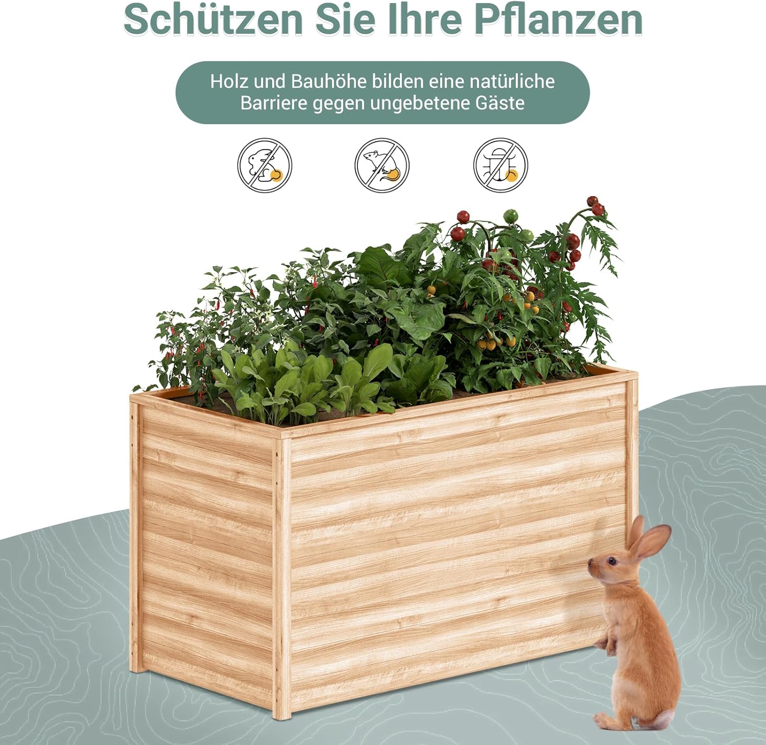 PflanzenabwehrDie 80 cm Höhe bietet zusätzlichen Schutz vor Schädlingen wie Kaninchen und Insekten, die Ihre Pflanzen gefährden könnten.