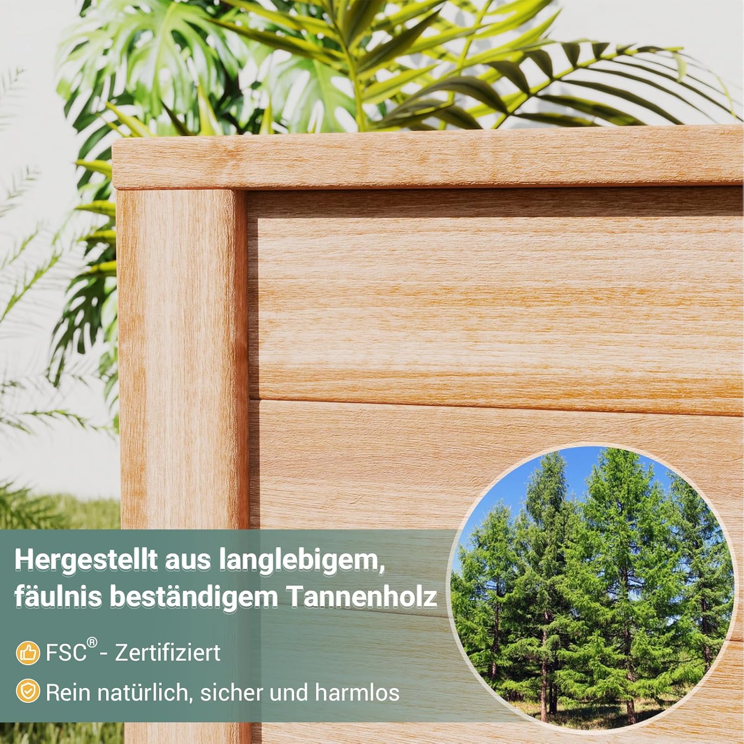 【Hochwertiger Tannenholz】 Das Hochbeet ist aus hochwertigem Tannenholz gefertigt, das witterungsbeständig und langlebig ist. Es ist ideal für die Outdoor-Nutzung und wird Ihrem Garten jahrelang Freude bereiten.