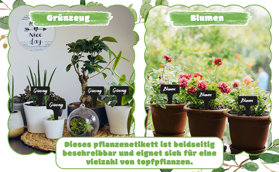 【Einfache Handhabung】Die beidseitig beschreibbaren Etiketten bieten ausreichend Platz für Pflanzennamen, Pflanzzeit oder süße Illustrationen. Die Beschriftungen werden nicht leicht durch Regen oder Wasser verschmiert und verblassen nicht in der Sonne.