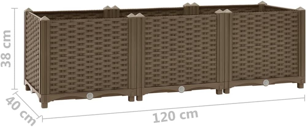 vidaXL Hochbeet Pflanzkasten Pflanzbeet Gemüsebeet Blumenbeet Blumenkasten Frühbeet Gartenbeet Blumenkübel Pflanzkübel 120x40x38cm Polypropylen Braun