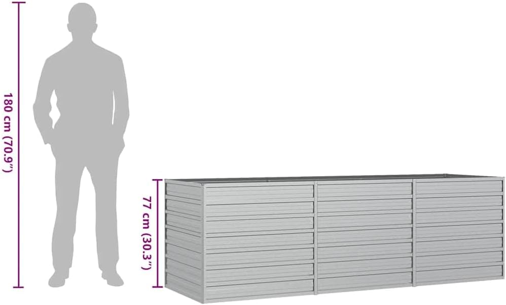 vidaXL Pflanzkasten Hochbeet 240x80x77 cm Stahl verzinkt Silber Hochbeet Pflanzkasten Gartenbeet Hochbeet Pflanzkasten Gartenbeete