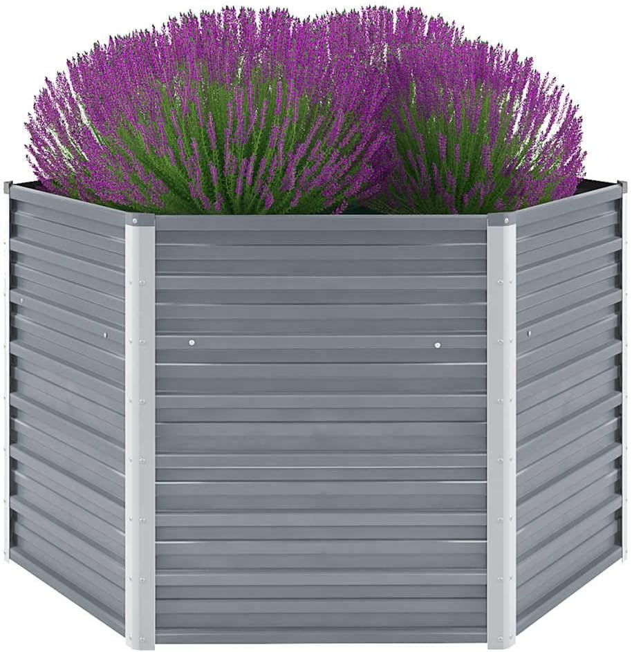 vidaXL Sechseck-Hochbeet aus verzinktem Stahl 129x129x77 cm, Grau, Pflanzkasten mit offenem Boden, wetterfest, für Gemüse, Kräuter und Garten