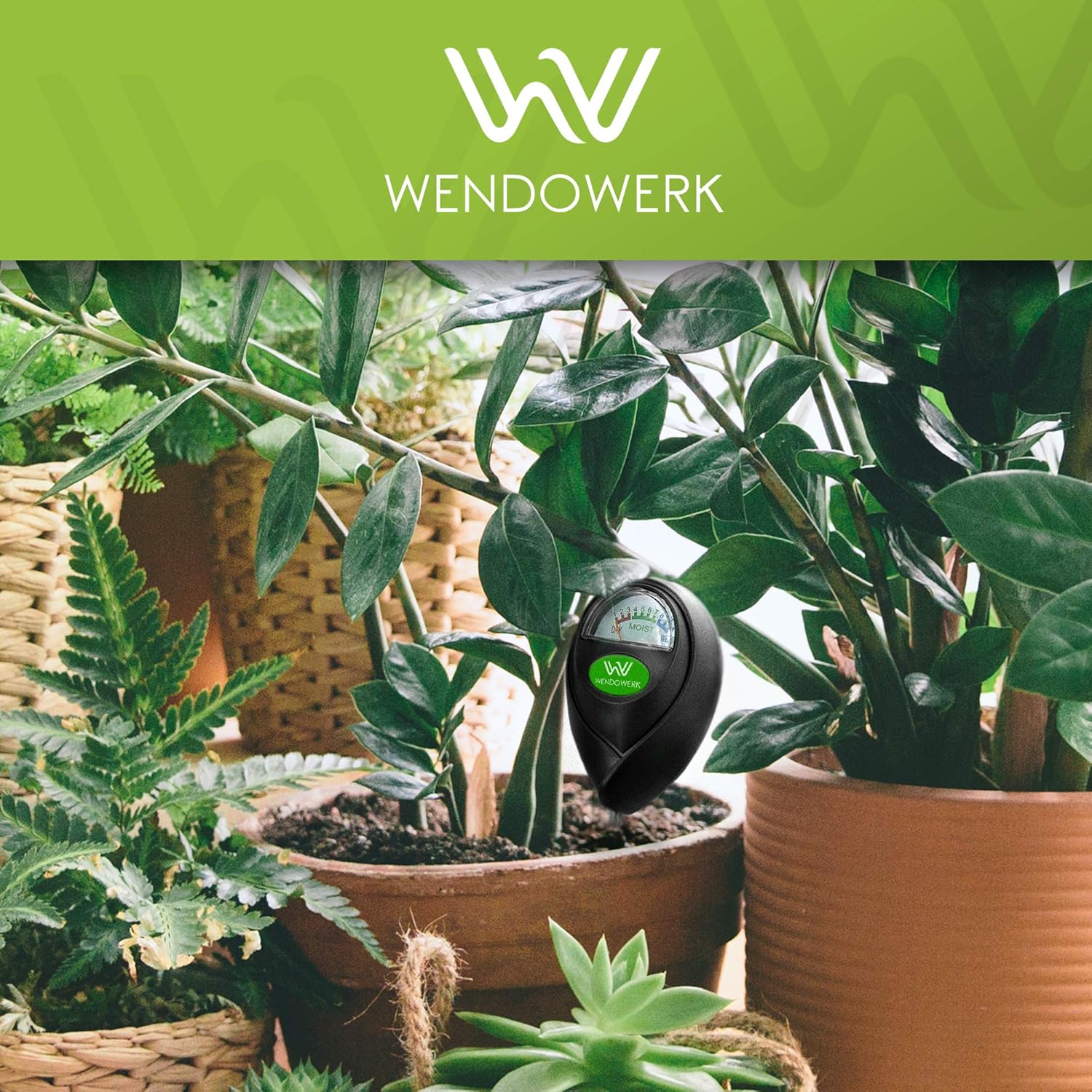 Wendowerk® Boden Feuchtigkeitsmesser für Pflanzen – [Grün/Schwarz] – Ohne Batterien – Verbessertes Feuchtigkeitsmessgerät Pflanzen [2025] – Premium Bodentester
