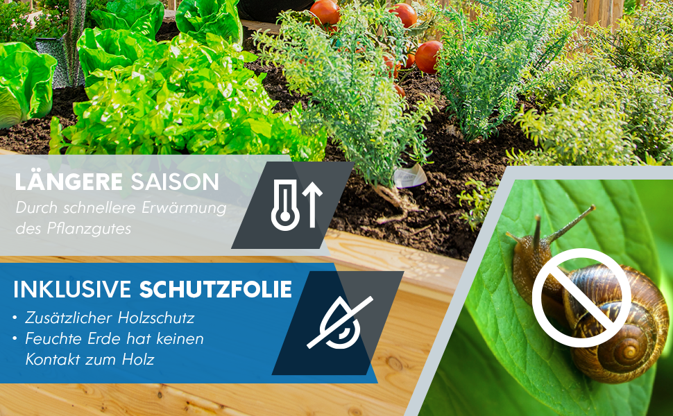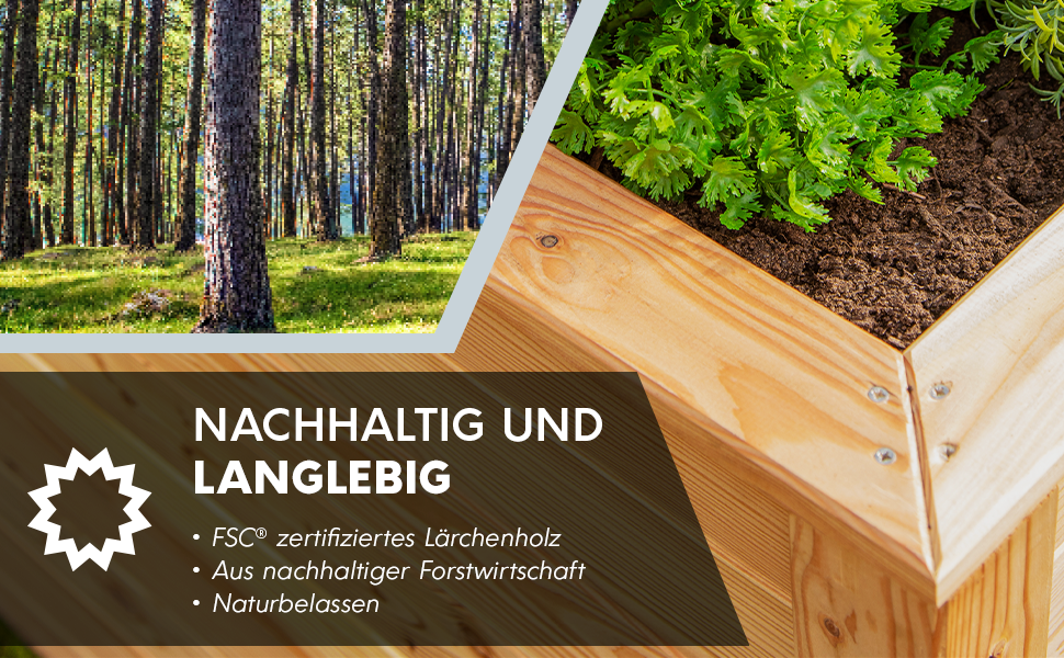 NATÜRLICHER SCHUTZ: Durch das im Holz enthaltene Harz wird das Hochbeet ganz natürlich geschützt und garantiert eine lange Lebensdauer. Durch die erhöhte Bauweise wird Ihr Pflanzgut zudem vor Schnecken oder anderen Schädlingen geschützt!
