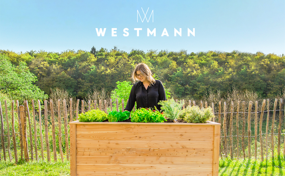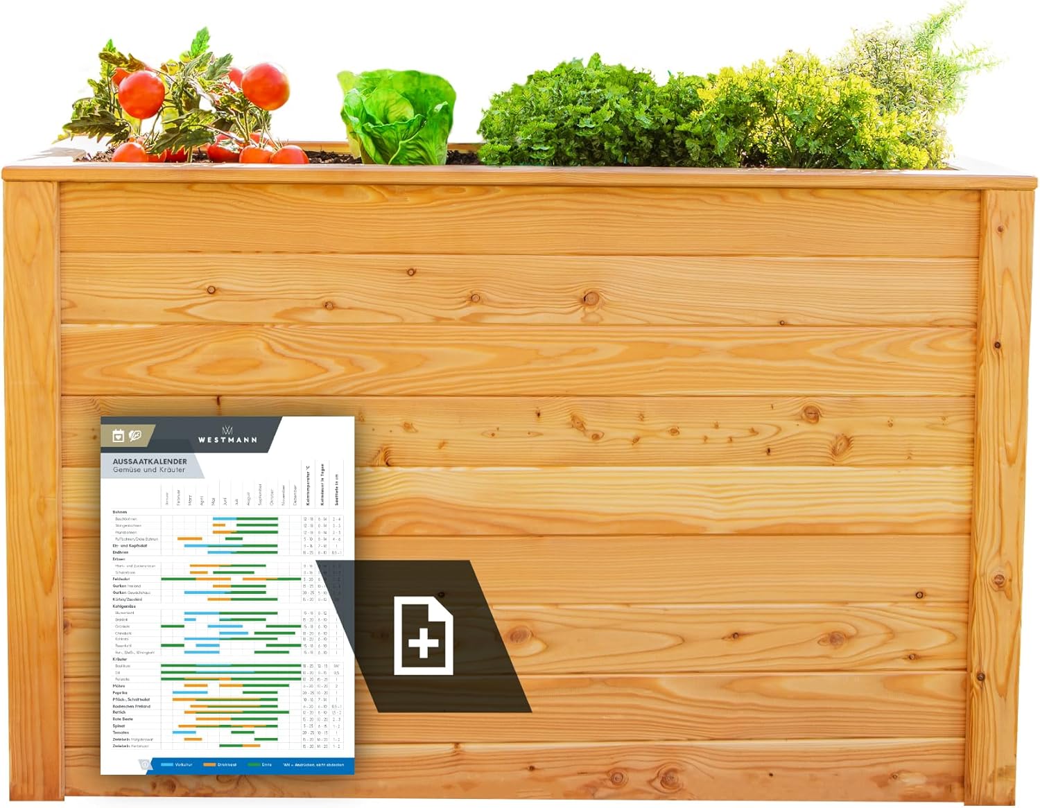 WESTMANN Hochbeet aus Lärchenholz | 130x65x84 cm Natur | Kräuterbeet für den Außenbereich | Holzhochbeet zum Bepflanzen von Gemüse & Kräutern