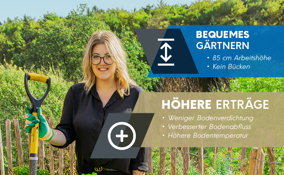 RÜCKENSCHONENDES GÄRTNERN: Durch die angenehme Stehhöhe am Hochbeet wird der Rücken während der Garten- & Pflanzarbeit entlastet und geschont! Keine lästigen Rückenschmerzen mehr durch ungesundes Bücken oder heben!