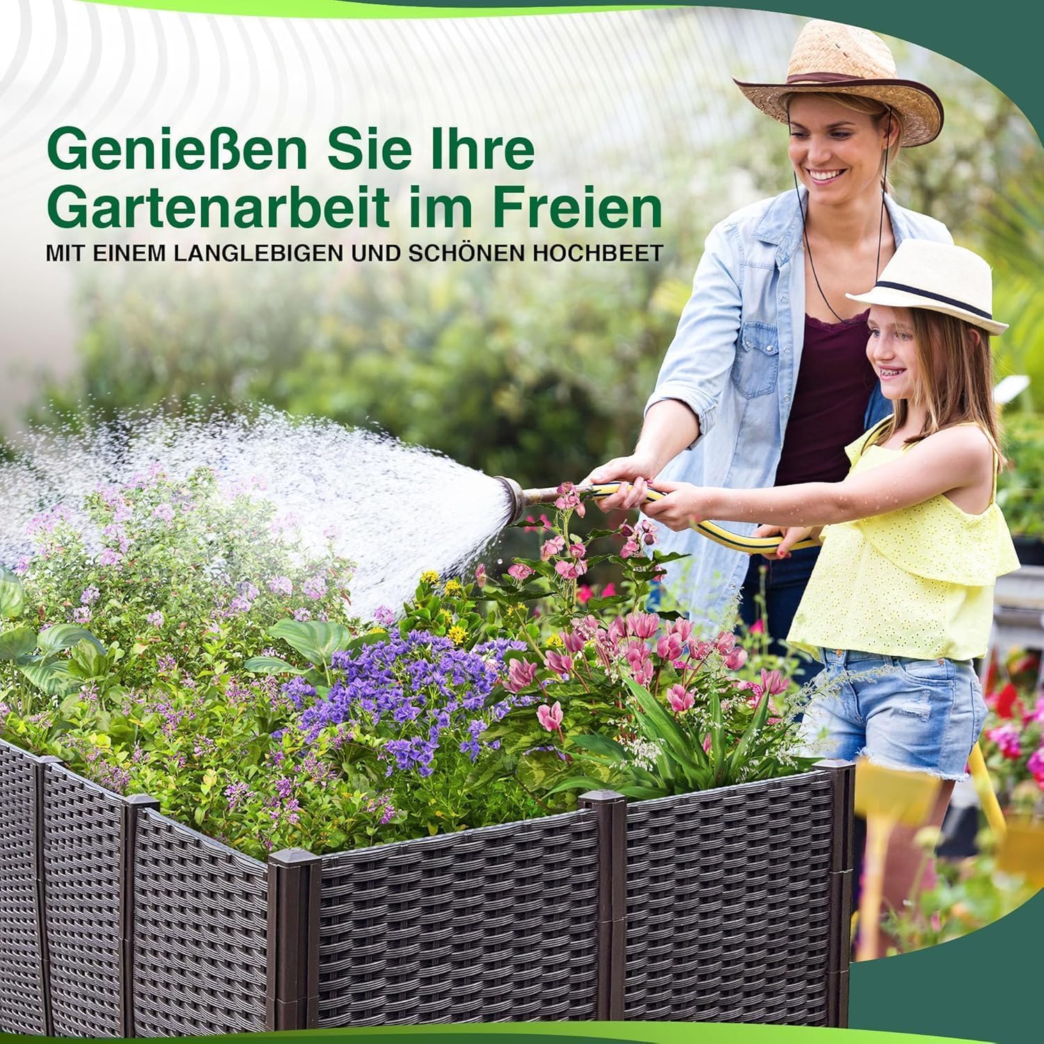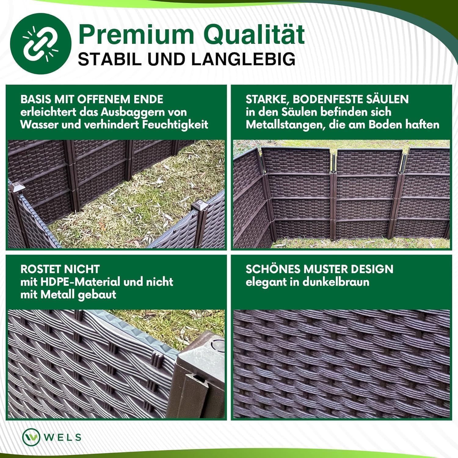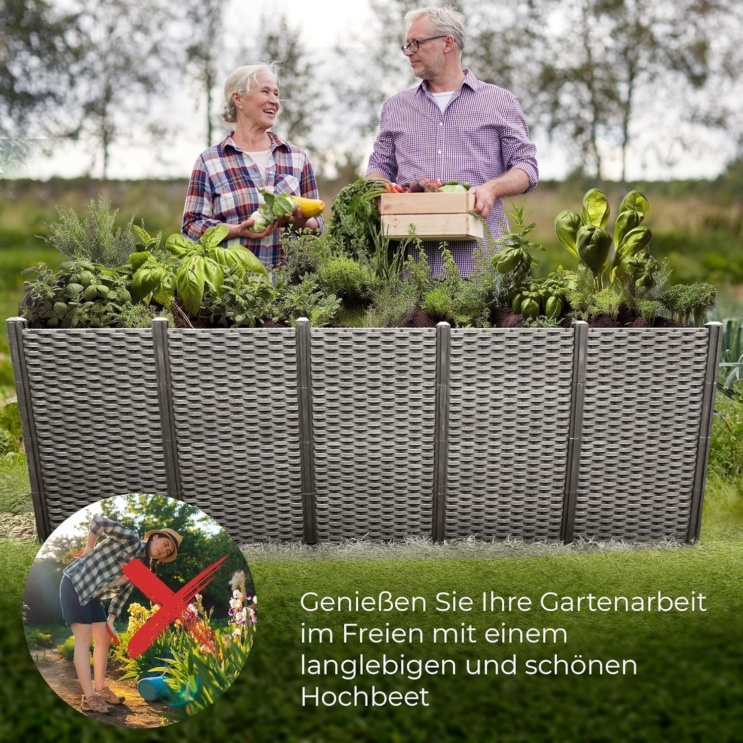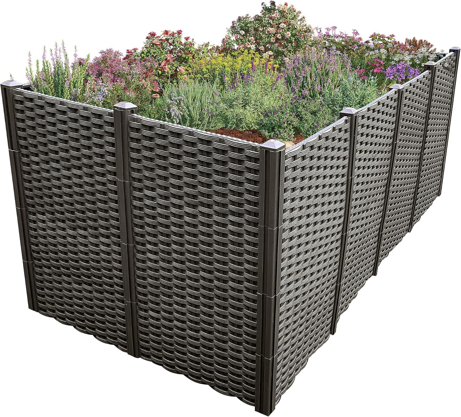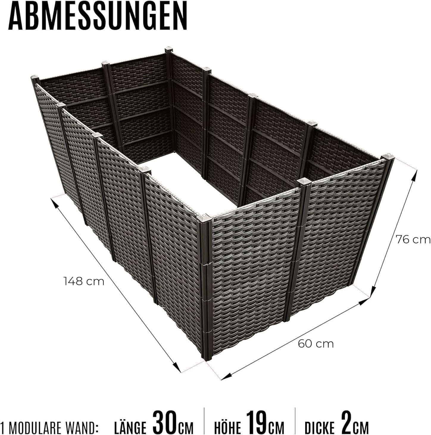 WIELS® Modulares Hochbeet für Garten, Rattan-Optik, 148 x 76 x 60 cm, Schwarz – Dunkelbraun