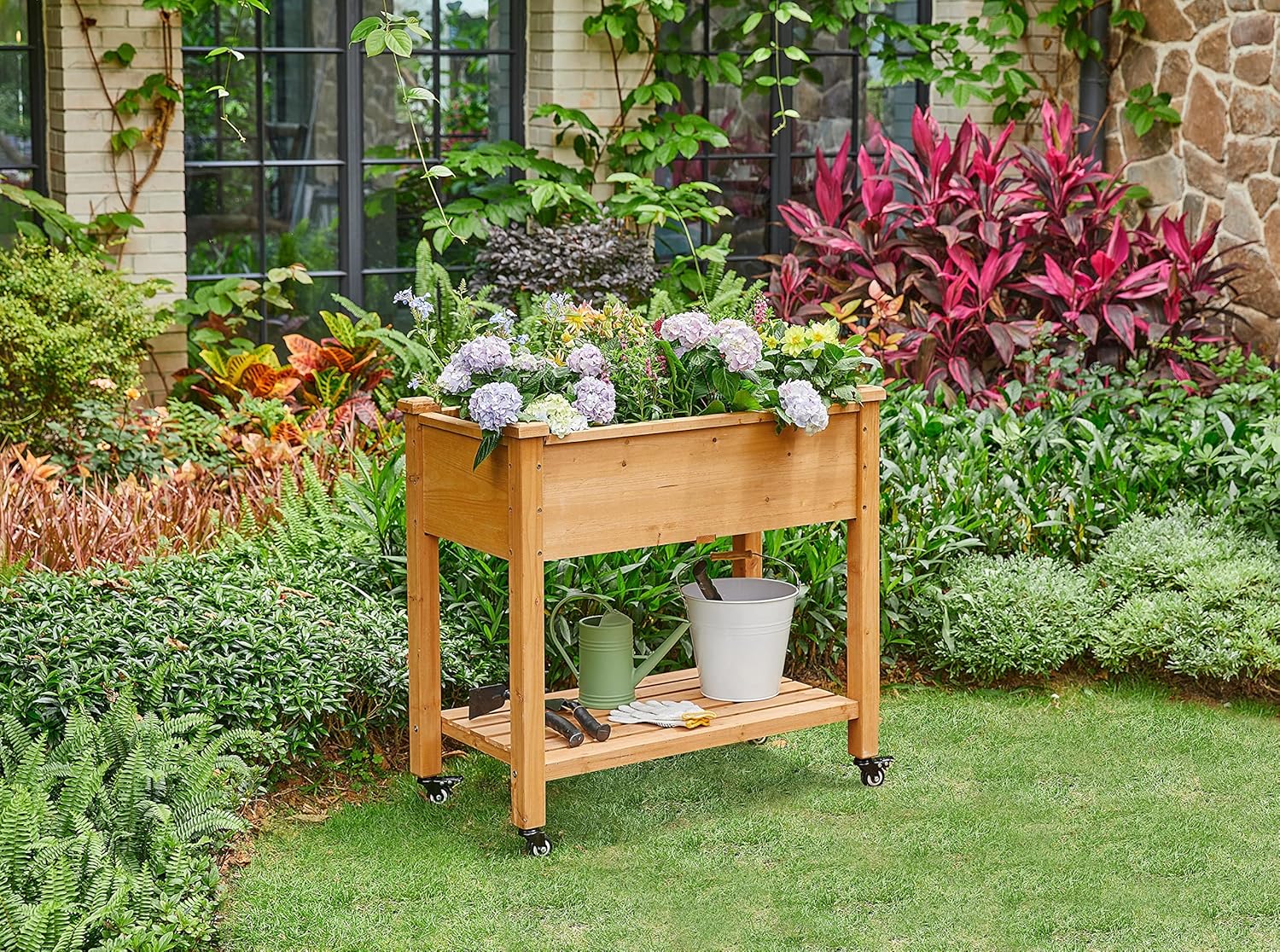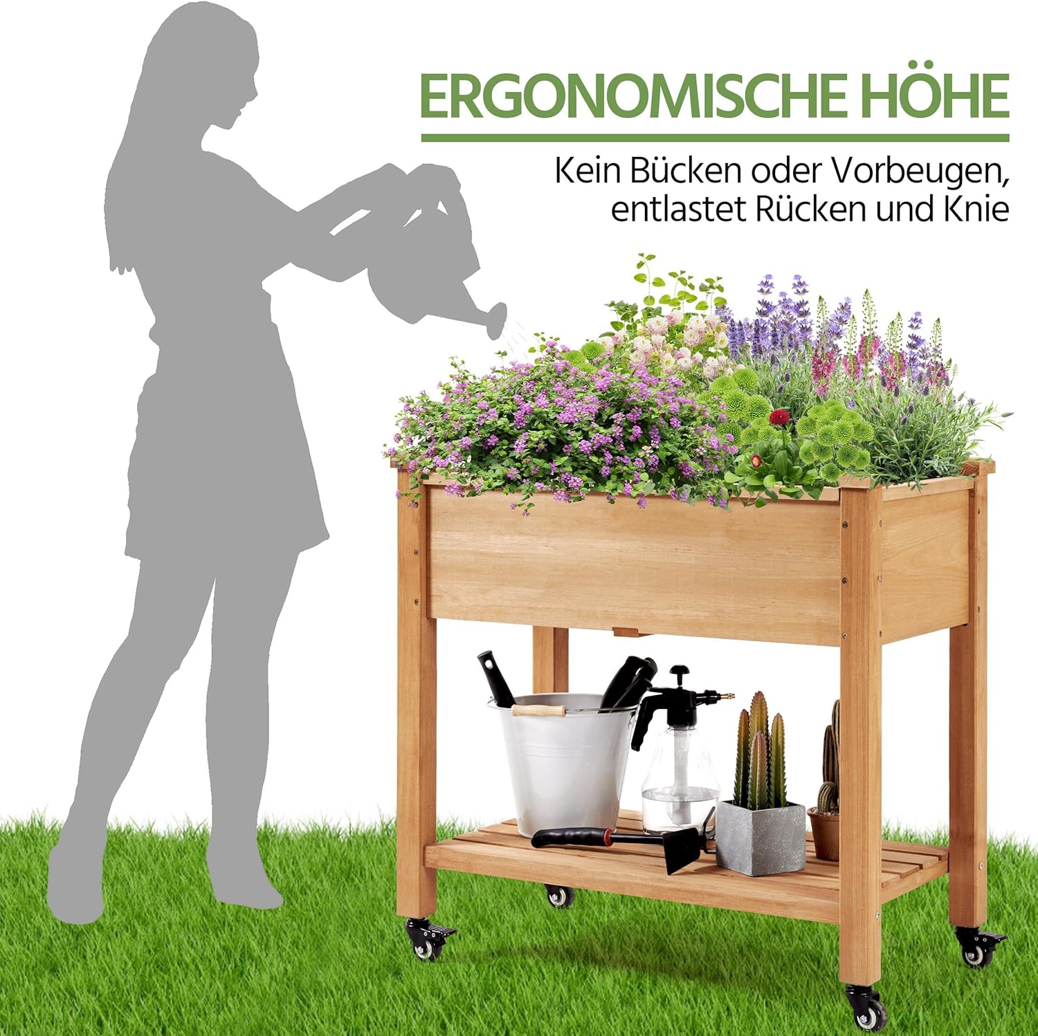9 Rezensionen für Yaheetech Hochbeet Pflanzkasten mit Rollen & Ablageboden für Garten, Balkon & Terrasse, 87 x 47 x 83,5 cm